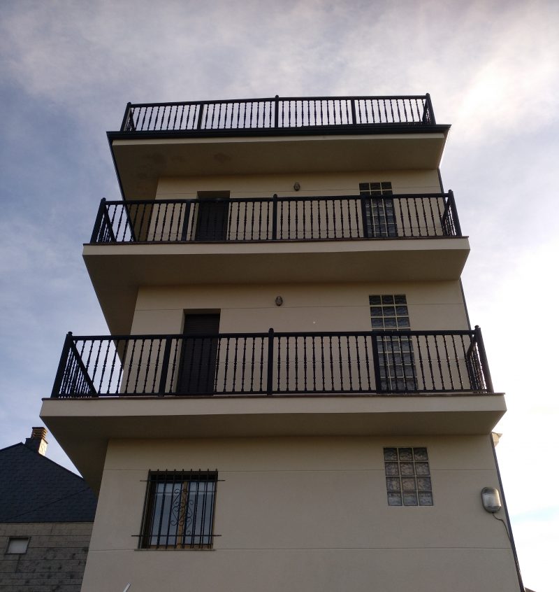 Casa: Refuerzo de la estructura de balcones, recrecido de suelos, instalación de fontanería en baño y aseo, instalación eléctrica, pre-instalación de calefacción, instalación de pladur, falso techo, suelo de tarima flotante, gres e instalación de azulejos, suelo de pizarra verde, pintado de paredes, acondicionamiento de fachada, pintado de fachada y barandillas, puertas interiores y exteriores.